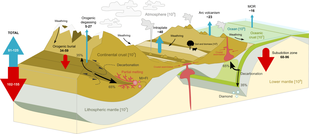 The continental crust and the volatile cycle – The global carbon cycle plays an important role in the long term self-regulation of the Earth system. However, the complex interaction between its deep, solid Earth component (i.e. crust and mantle), Earth’s fluid envelope (i.e. atmosphere and hydrosphere) and plate tectonic processes is a subject of ongoing debate. Throughout Earth’s history, outgassing through volcanic regions may have largely exceeded carbon removal by burial and subduction into the mantle, yet the long-term geological records show that Earth has not experienced run-away carbonation of the atmosphere. An important carbon sink that is not yet adequately accounted for is the deep continental crust. My research indicates that the fluctuation in orogenic activity throughout the Wilson cycle has a critical role in achieving balance in the long-term carbon cycle during the Phanerozoic.